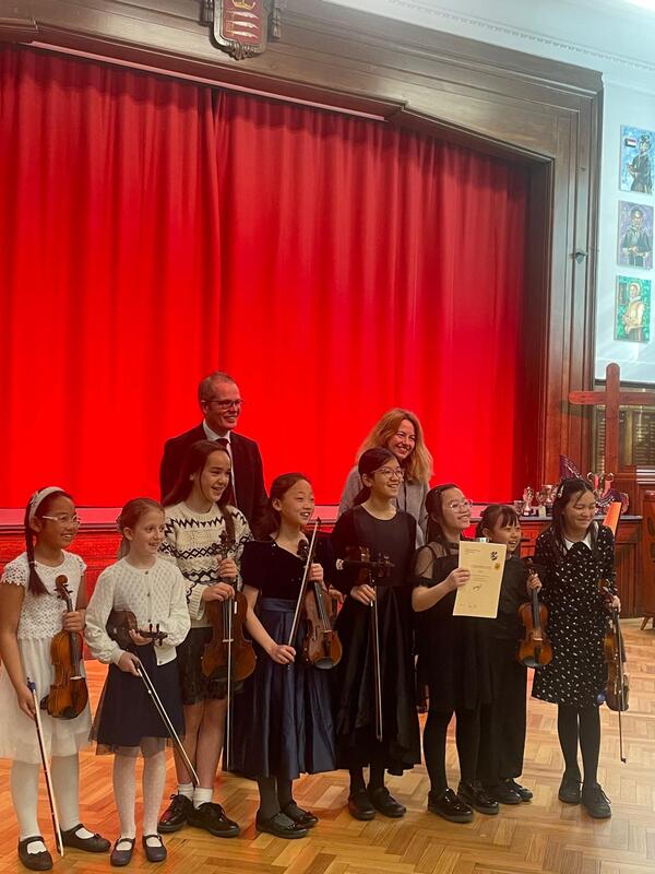The Teddington Violin Advanced Ensemble No. 3 who won the first prize and a shield for their performance of Sviridov's Snowstorm romance.